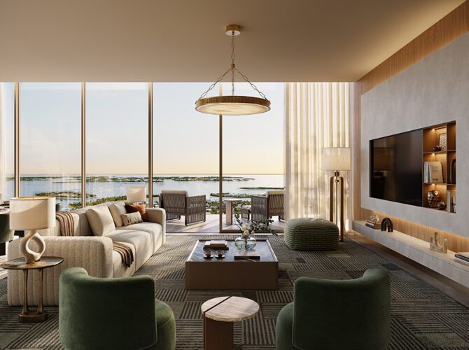 Each residence at Avarra by Palace features expansive floor-to-ceiling glass façades, premium marble flooring, and warm neutral interiors curated by the Palace design team. Layouts range from intimate one-bedroom homes to expansive four-bedroom sanctuaries and an exclusive six-bedroom penthouse.