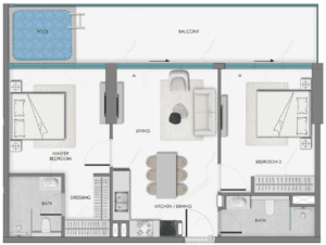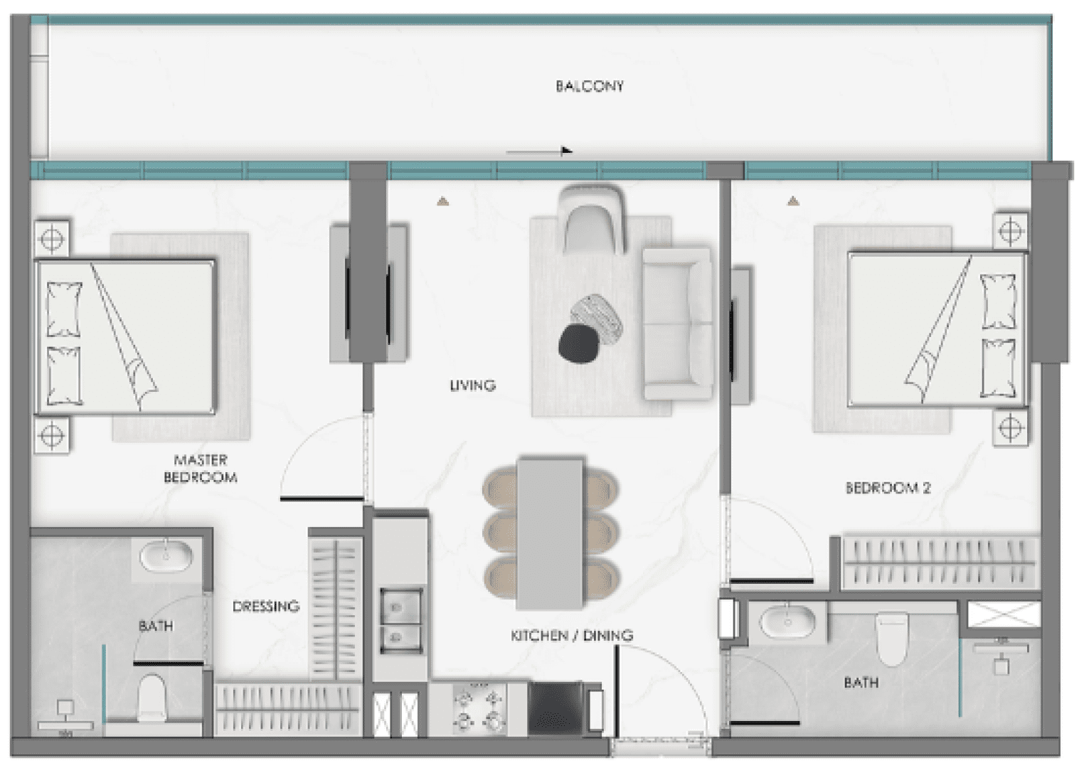 2-Bedroom ~900 – 1,021 sq. ft. From AED 1,251,000