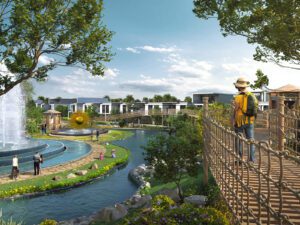 Sun City is built around a wellness-centric design philosophy, integrating open spaces and natural features throughout the community.